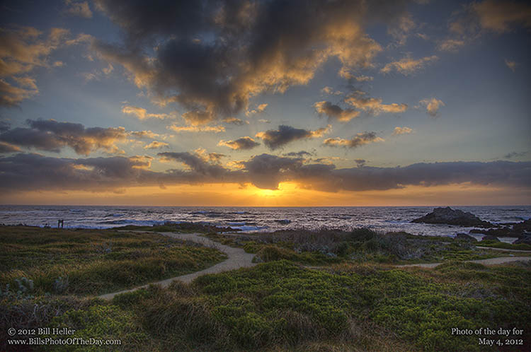 An amazing sunset at Asilomar State Beach in Pacific Grove, California. The Monterey Peninsula has no end of beautiful views. As the golden sunset light stretches across the beaches the show only gets better. The only real problem is choosing just one place to sit and enjoy the evening.
